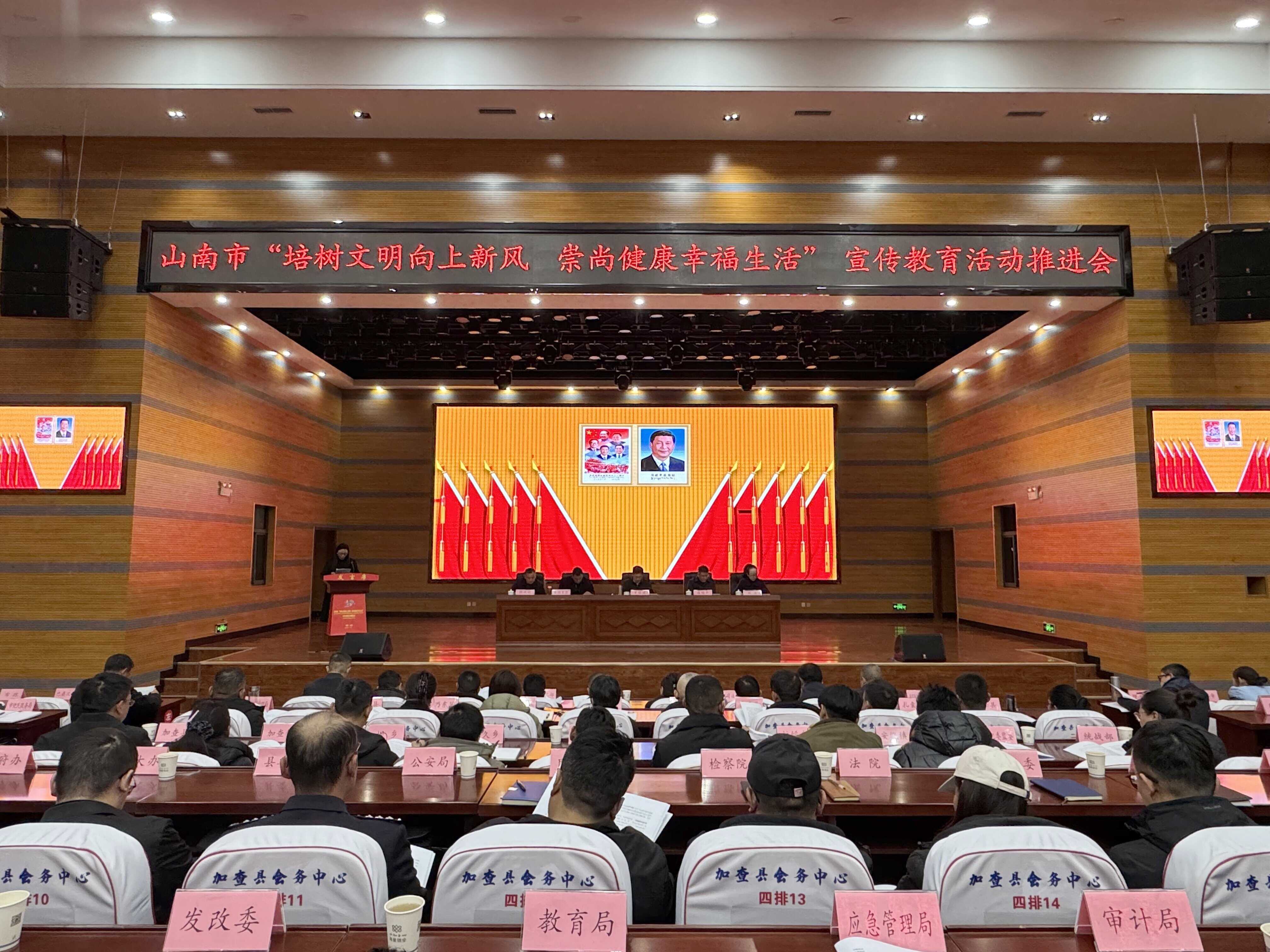 12月9日,我市“培树文明向上新风 崇尚健康幸福生活”宣传教育活动推进会在加查县召开,传达学习习近平总书记对精神文明建设工作的重要指示和中国文明乡风大会精神以及李富忠书记对“培树文明向上新风 崇尚健康幸福生活”宣传教育活动的批示,通报全市宣传教育活动开展情况,安排部署下一阶段工作。
